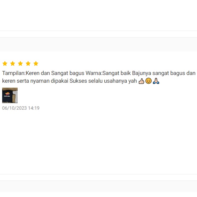 Tampilan:Keren dan Sangat bagus Warna:Sangat baik Bajunya sangat bagus dan keren serta nyaman dipakai Sukses selalu usahanya yah